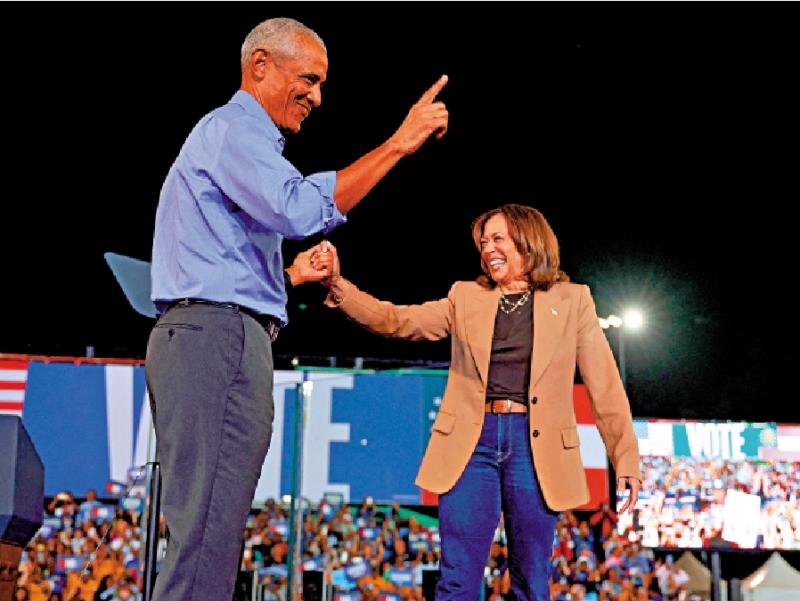 圖:哈里斯24日與奧巴馬一同現(xiàn)身佐治亞州造勢。\法新社
