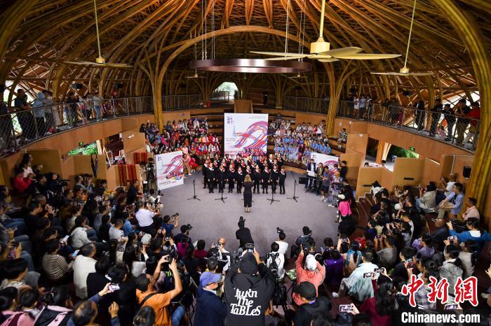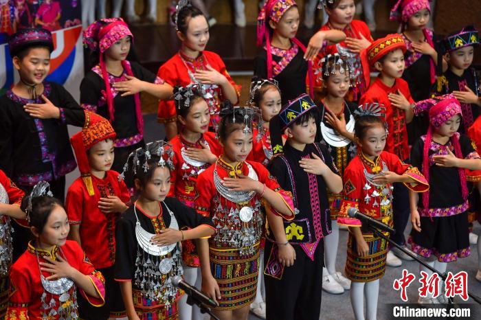 圖為海南五指山黎苗童聲合唱團演唱歌曲《久久不見久久見》。中新社記者 駱云飛 攝
