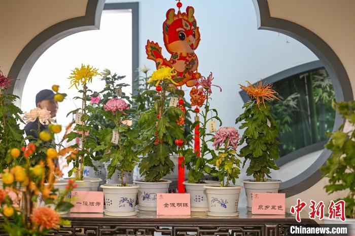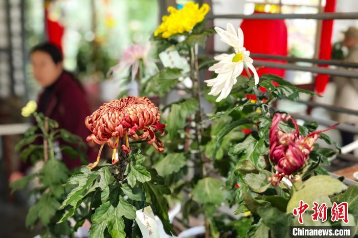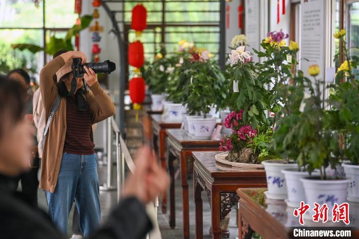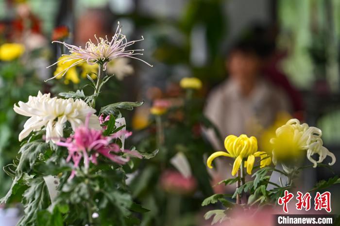10月28日,江蘇南京,展出的菊花吸引市民前來欣賞。中新社記者 泱波 攝