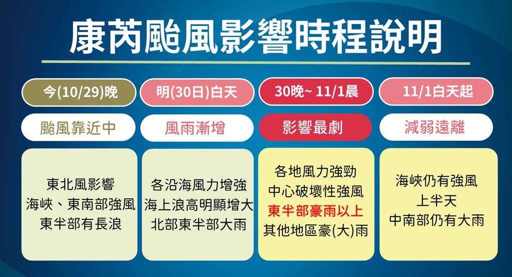 “康妮”臺風風雨時程變化。(臺氣象部門)