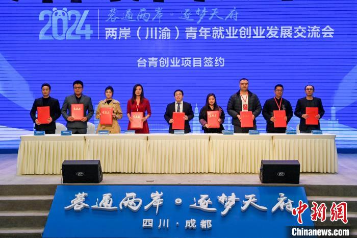 中新社成都11月3日電 (袁牟知博)兩岸(川渝)青年就業(yè)創(chuàng)業(yè)發(fā)展交流會(下稱“交流會”)3日在成都啟幕,8個臺青創(chuàng)業(yè)項目現(xiàn)場簽約,447家在川兩岸企業(yè)發(fā)布4901個臺青實習(xí)就業(yè)崗位。
