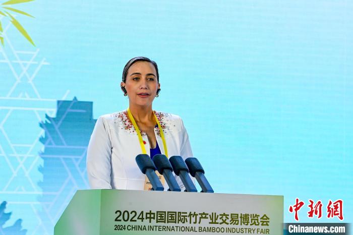 11月11日,四川青神,開(kāi)幕式上厄瓜多爾圣多明各-德洛斯查奇拉斯省省長(zhǎng)約翰娜·雅迪拉·努涅斯·加西亞致辭。中新社記者 劉忠俊 攝