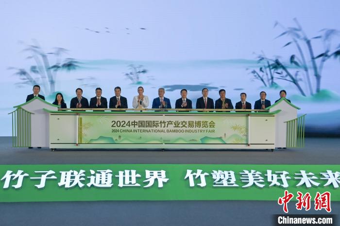 11月11日,四川青神,開(kāi)幕儀式現(xiàn)場(chǎng)嘉賓共同啟動(dòng)竹博會(huì)。中新社記者 劉忠俊 攝