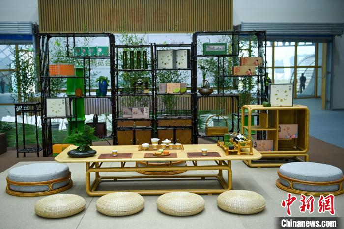 11月11日,四川青神,竹博會(huì)現(xiàn)場(chǎng)的竹制品家具。中新社記者 劉忠俊 攝