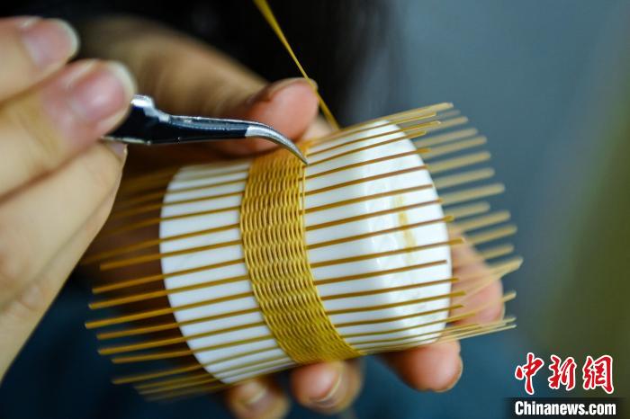11月11日,四川青神,博覽會(huì)現(xiàn)場(chǎng)手藝人正在展示瓷胎編織技藝。中新社記者 劉忠俊 攝