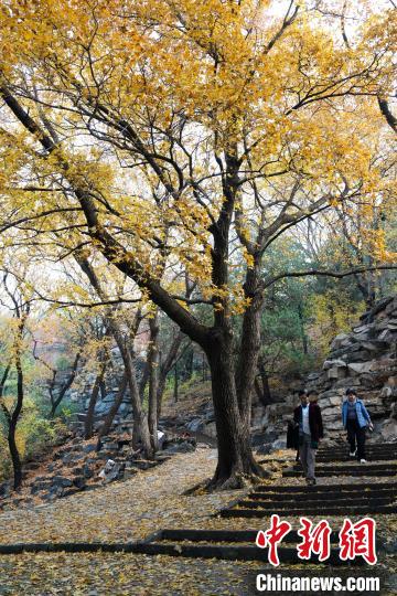 11月14日,北京天氣晴好,頤和園秋色吸引游客觀賞、拍照。圖為民眾在頤和園萬壽山賞秋景。中新社記者 張祥毅 攝