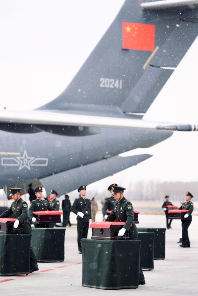 11月28日,代號(hào)為“鯤鵬”的“運(yùn)-20”專機(jī)將接運(yùn)第十一批43位在韓中國(guó)人民志愿軍烈士遺骸踏過(guò)千重云浪,回到闊別已久的祖國(guó)。