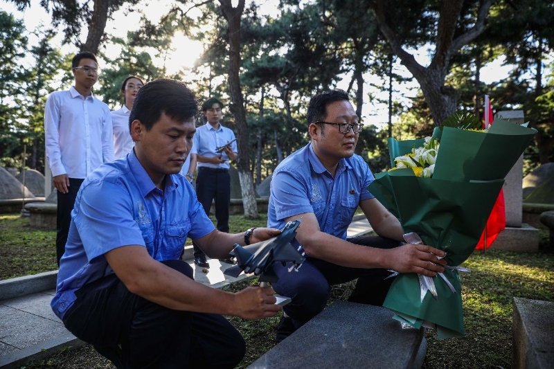 2022年9月17日,第九批在韓志愿軍烈士遺骸回國(guó)的第二天,中國(guó)航空工業(yè)集團(tuán)沈飛公司青年技術(shù)工人方文墨和同事來(lái)到沈陽(yáng)抗美援朝烈士陵園祭掃。