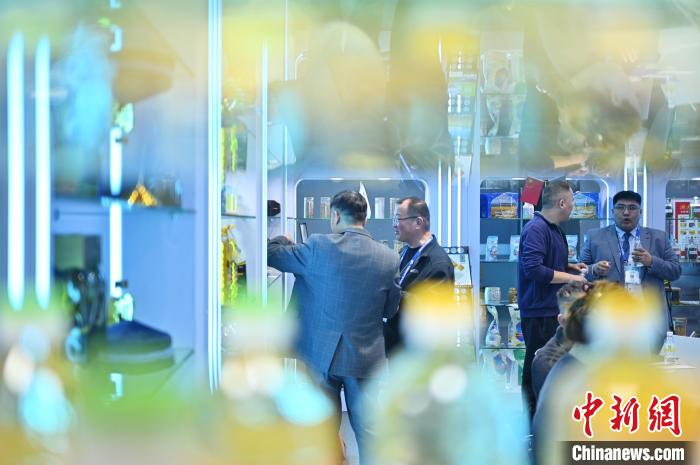 圖為烏茲別克斯坦展位的干果吸引采購商購買。中新社記者 陳楚紅 攝