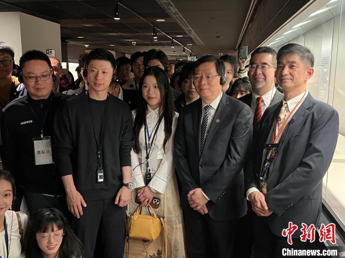 11月30日,大陸高校師生赴臺訪問團參觀臺北故宮博物院。圖為北京體育大學學生、乒乓球世界冠軍馬龍靠近細看毛公鼎。中新社記者 路梅 攝