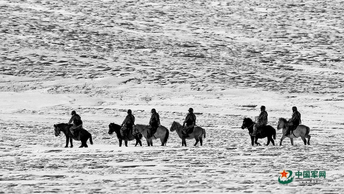 官兵在雪地里騎馬巡邏。解放軍報(bào)特約記者 劉曉東攝