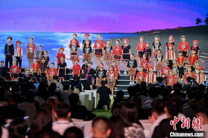 圖為五指山黎苗童聲合唱團(tuán)的孩子們?cè)陂_(kāi)幕式上表演微音樂(lè)劇《千里共嬋娟》。中新社記者 駱云飛 攝