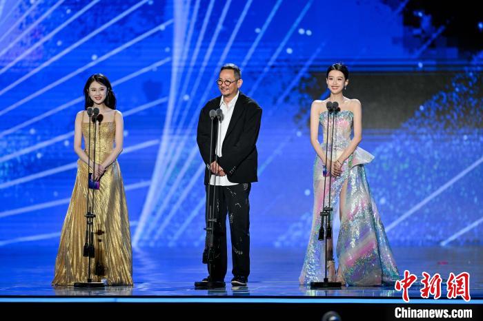 圖為劉浩存(左)、耿樂(lè)(中)、袁姍姍為金椰獎(jiǎng)入圍故事長(zhǎng)片推介。中新社記者 駱云飛 攝