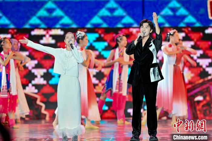 圖為蘇運(yùn)瑩(左)、牛駿峰演唱歌曲《久久不見(jiàn)久久見(jiàn)》。中新社記者 駱云飛 攝