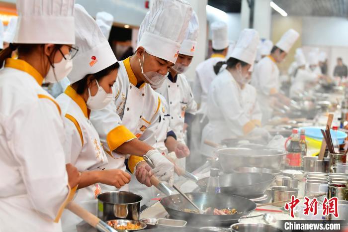 12月8日,2024年“食尚兩岸·香聚沙縣”新閩菜·海峽兩岸廚藝交流活動(dòng)在福建三明沙縣區(qū)舉行,活動(dòng)上60名兩岸學(xué)生進(jìn)行菜品制作的實(shí)操,聯(lián)手制作兩岸美食,一道道色香味俱全的佳肴,上演了一場(chǎng)“色、香、味”俱全的比拼。中新社記者 張斌 攝