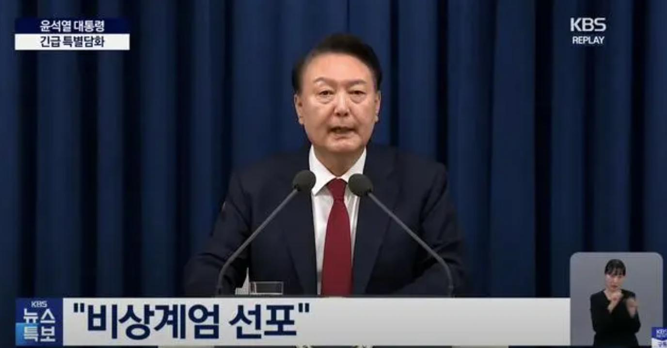 韓國總統(tǒng)尹錫悅宣布實(shí)施緊急戒嚴(yán)