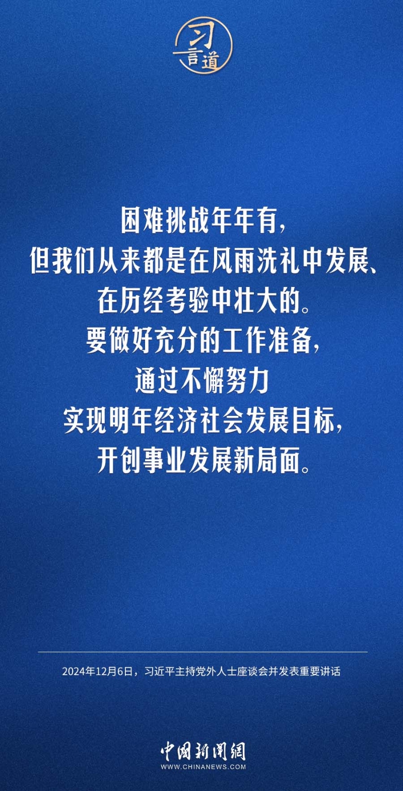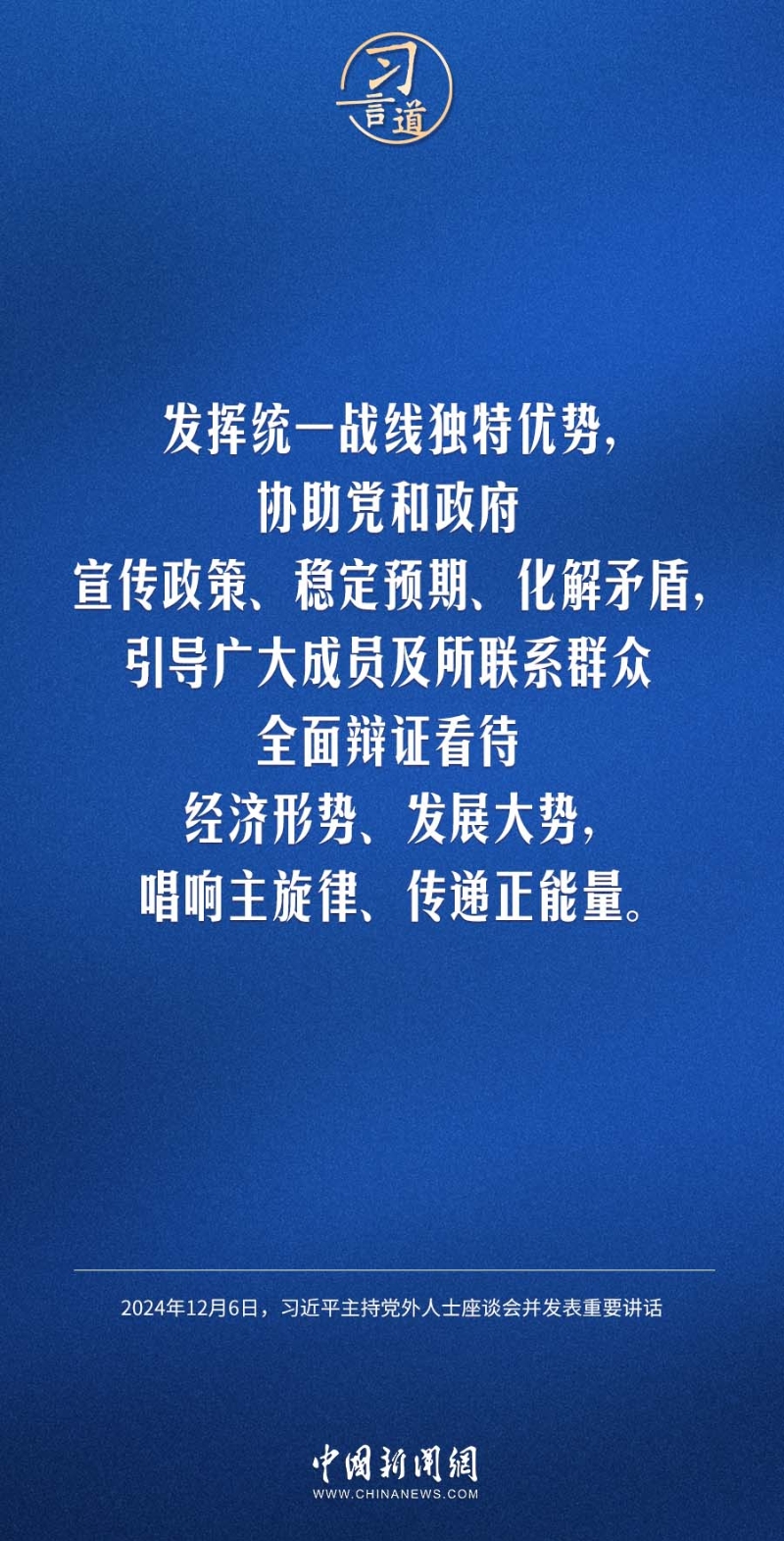 12月6日,中共中央在中南海召開黨外人士座談會,就今年經(jīng)濟(jì)形勢和明年經(jīng)濟(jì)工作聽取各民主黨派中央、全國工商聯(lián)負(fù)責(zé)人和無黨派人士代表的意見和建議。中共中央總書記習(xí)近平主持座談會并發(fā)表重要講話強(qiáng)調(diào)——