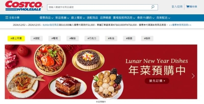 距離2025年春節(jié)還有不到50天,臺灣許多餐廳、超市已開始進(jìn)行年菜預(yù)購。近日有某臺灣網(wǎng)紅發(fā)現(xiàn),零售商Costco(臺灣稱“好市多”,大陸稱“開市客”)在臺灣官網(wǎng)刊登的年菜預(yù)購廣告,英文介紹寫的是“Chinese New Year”,隨后其發(fā)信給好市多,讓好市多“考慮到用字精準(zhǔn)的重要性”,而好市多在不到7小時(shí),就將臺灣官網(wǎng)原本的“Chinese New Year”改為“Lunar New Year”。此事已在島內(nèi)引發(fā)討論。