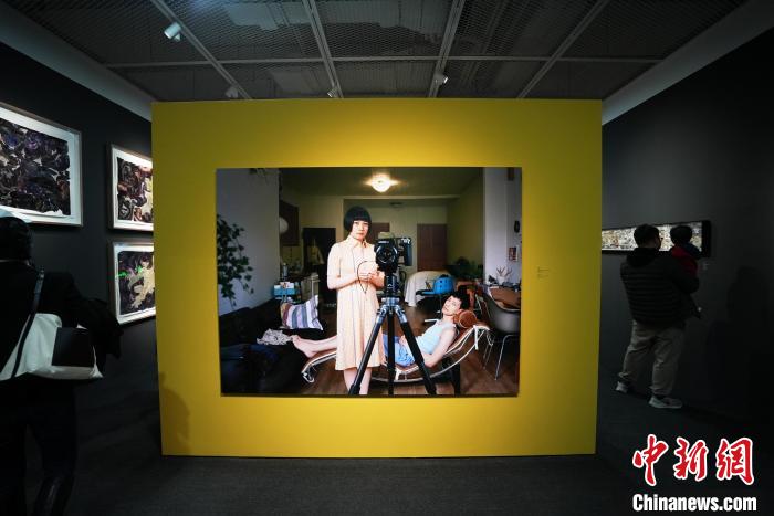 圖為藝術(shù)家廖逸君的作品將鏡頭對(duì)準(zhǔn)觀眾,進(jìn)行角色互換。中新社記者 張亨偉 攝
