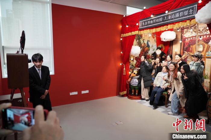 圖為觀眾在馬良作品“移動(dòng)照相館”合影。中新社記者 張亨偉 攝