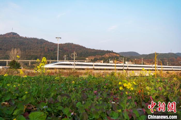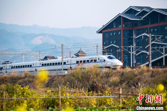 圖為一列動車組列車在貴廣高鐵貴州省從江縣洛香鎮(zhèn)段附近行駛。吳德軍 攝