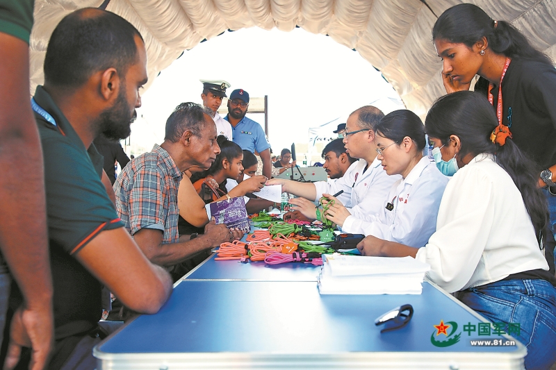 和平方舟醫(yī)院船在斯里蘭卡科倫坡為當(dāng)?shù)孛癖娞峁┽t(yī)療服務(wù)。劉志磊 攝