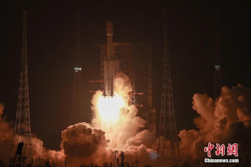 資料圖:2024年11月15日,搭載天舟八號(hào)貨運(yùn)飛船的長(zhǎng)征七號(hào)遙九運(yùn)載火箭,在中國(guó)文昌航天發(fā)射場(chǎng)點(diǎn)火發(fā)射。中新社記者 賈天勇 攝
