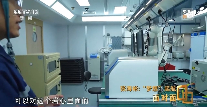 張海彬:就等著我們正式鉆探取出來巖心之后,在這里進(jìn)行科學(xué)實(shí)驗(yàn)分析。