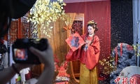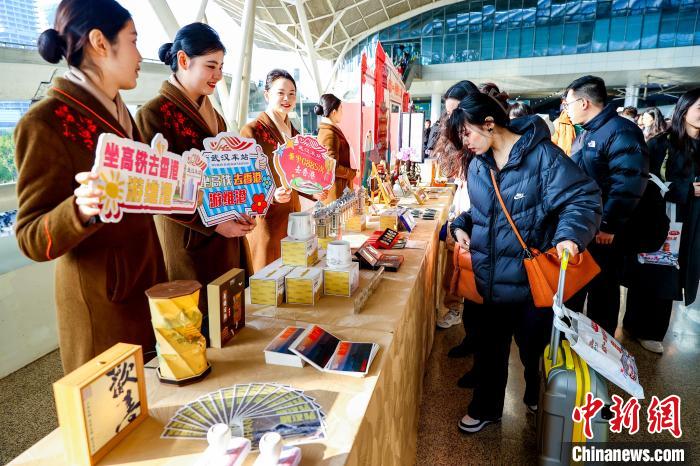 圖為乘客被文創(chuàng)產(chǎn)品吸引。中新社記者 張暢 攝