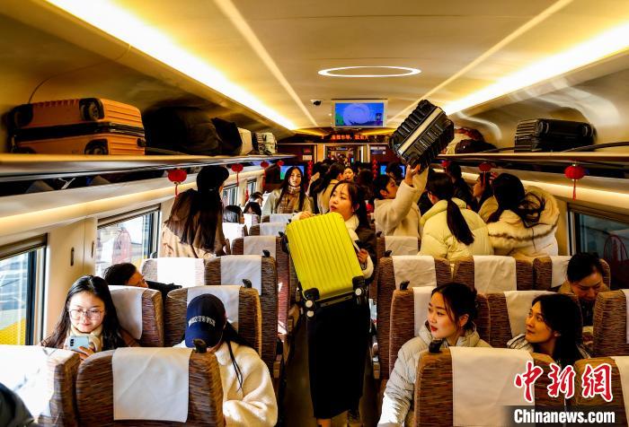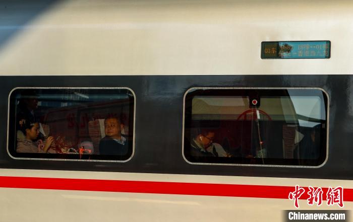 圖為旅客搭乘G885次復(fù)興號列車從武漢前往香港。中新社記者 張暢 攝