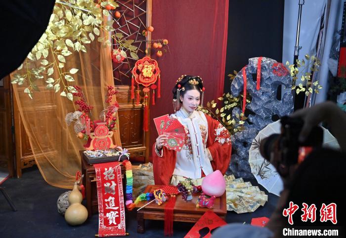 1月6日,吉林長春,市民在拍攝漢服寫真。店家介紹,農(nóng)歷蛇年春節(jié)將至,漢服寫真成了顧客新需求,店家特推出百梅迎春、金蛇賀歲、招財進寶等主題,深受市民喜愛。中新社記者 張瑤 攝