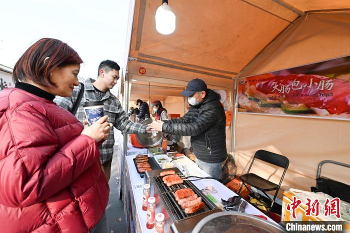 1月9日,市民品嘗臺(tái)灣烤腸。中新社記者 王剛 攝