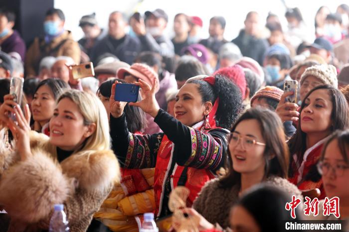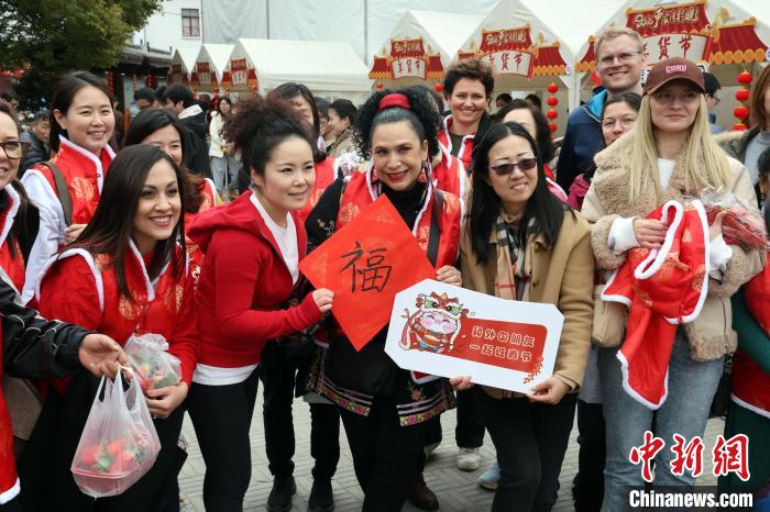 1月24日,在上海市閔行區(qū)嚴(yán)家灣舉行的“村晚”吸引了不少在滬外籍人士走進(jìn)美麗鄉(xiāng)村,逛新春集市、品嘗農(nóng)家飯、做中國結(jié),感受濃濃的中國年味,與當(dāng)?shù)卮迕褚黄鹩蛹磳⒌絹淼闹袊r(nóng)歷新年。中新社記者 湯彥俊 攝