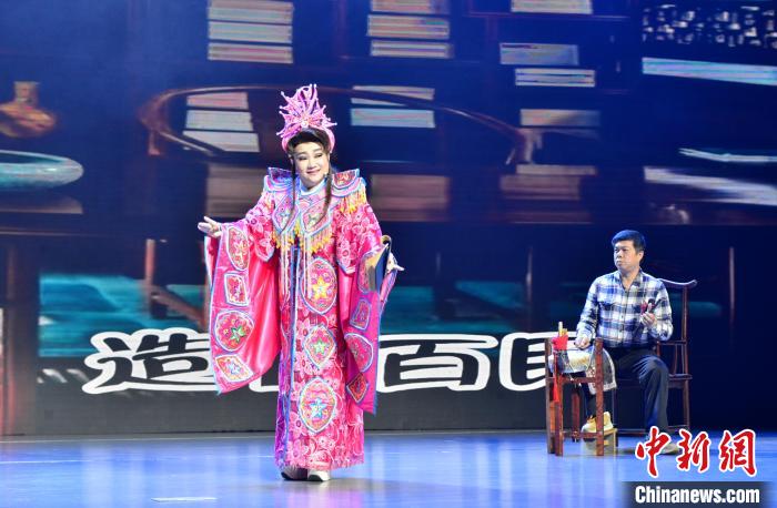 1月22日,臺(tái)灣歌仔戲藝術(shù)家王貴芬(左)和朱晁升(右)同臺(tái)表演歌仔戲《書卷藏志遠(yuǎn)》。中新社記者 呂明 攝