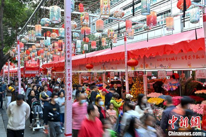 1月25日,廣東廣州,已有百年歷史的西湖花市開市迎客。圖為西湖花市客流如織。中新社記者 陳驥旻 攝