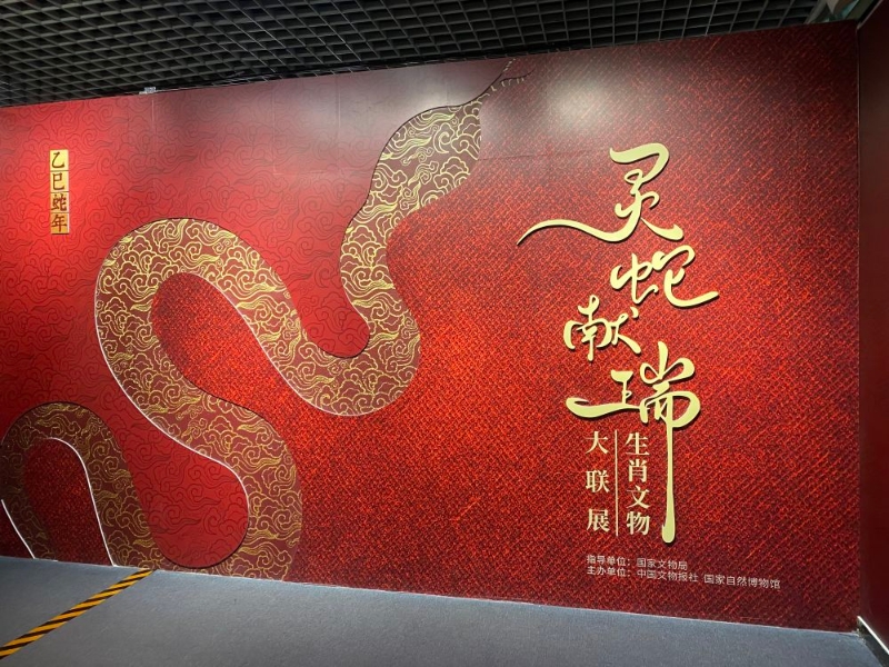 “靈蛇獻瑞——2025乙巳蛇年生肖文物大聯(lián)展”入口處的大幅海報。新華社記者 羅鑫 攝