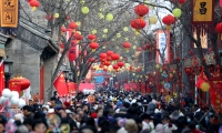 2月5日傍晚,江蘇南京,溧水魏家村“魏家雙龍”走家串戶。溧水的舞龍活動有四百多年的歷史,今年春節(jié)期間,當?shù)亻_展多種形式的民俗活動,近40條大龍起舞,熱鬧迎春。
