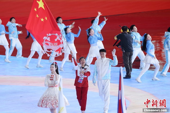 中國(guó)自由式滑雪老將徐夢(mèng)桃擔(dān)任哈爾濱亞冬會(huì)閉幕式中國(guó)體育代表團(tuán)旗手。
