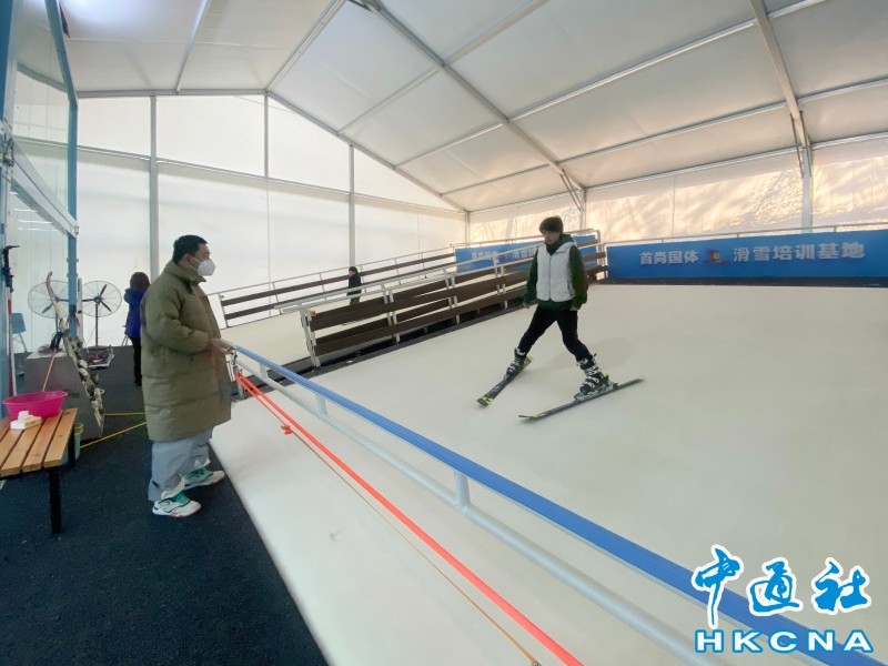 資料圖:滑雪愛好者在北京東四環(huán)附近的旱地滑雪場滑雪。 香港中通社圖片
