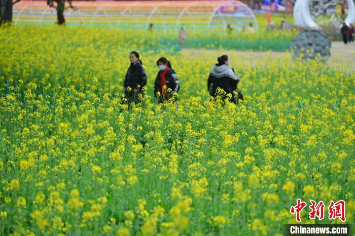 2月18日,游客在福州花海公園游覽、賞花。福州花海公園油菜花迎來最佳觀賞期,吸引不少市民、游客前去游覽。中新社記者 呂明 攝