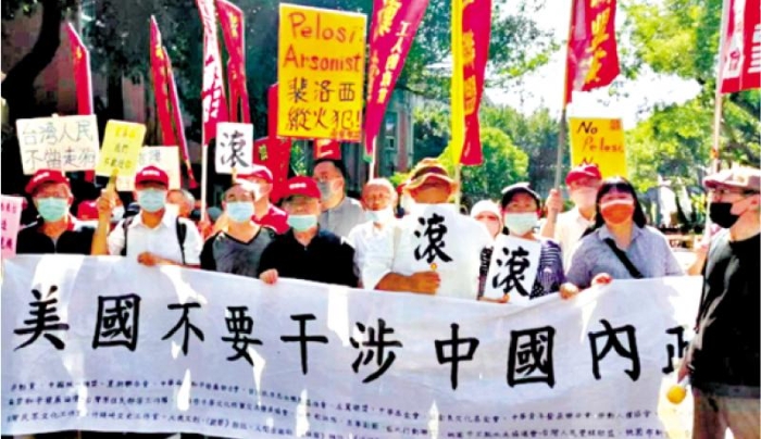 圖:臺(tái)灣民眾游行示威,批評美國政府插手臺(tái)灣問題破壞臺(tái)海和平。\資料圖片