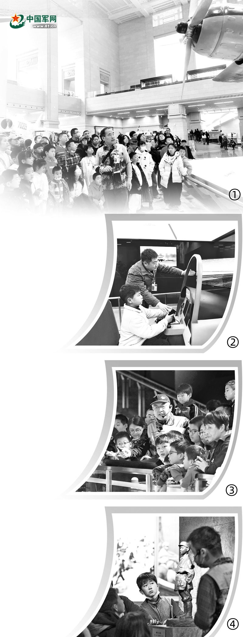 圖①:志愿者為觀眾講述飛機(jī)背后的故事。張 榮攝
