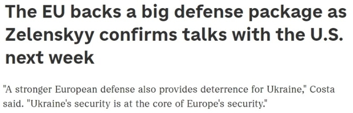 歐洲理事會主席科斯塔表示,更強大的歐洲防務也為烏克蘭提供了威懾力量,而“烏克蘭的安全是歐洲安全的核心所在”。
