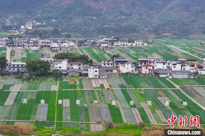 3月12日,四川樂(lè)山,航拍牟子鎮(zhèn)岷江邊萬(wàn)畝香蔥產(chǎn)業(yè)示范基地。(無(wú)人機(jī)照片)中新社記者 劉忠俊 攝