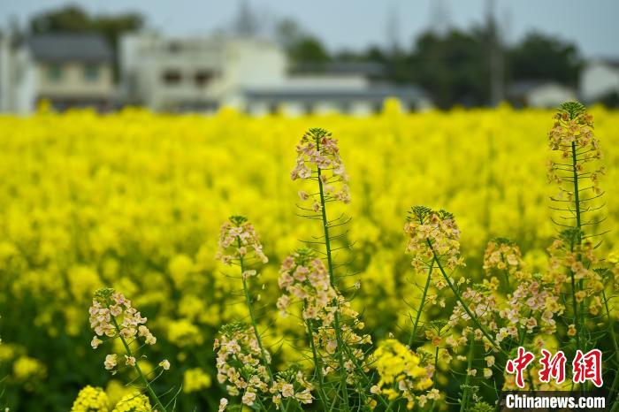 3月12日,四川青神,新光村競(jìng)相開(kāi)放的彩色油菜花。中新社記者 劉忠俊 攝