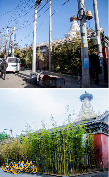 北京市西城區(qū)宮門口東西岔胡同整改前后對比照片。(北京市西城區(qū)城市管理委員會供圖)