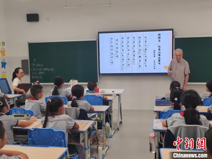 2024年10月,臺灣南音藝術(shù)家卓圣翔在廈門市翔安區(qū)實驗學校教授音樂課。(羅純禎 供圖)