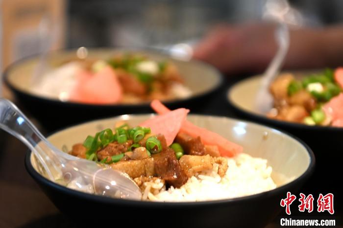 臺(tái)胞黃品諺剛制作好的“臺(tái)灣味”鹵肉飯。中新網(wǎng)記者 張金川 攝