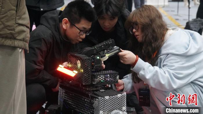 圖為賽前準備階段參賽隊伍成員在調(diào)試機器人。莫偉雯 攝
