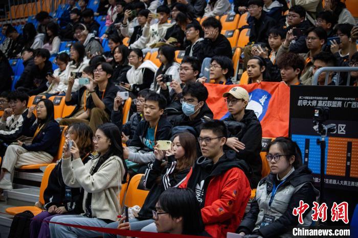圖為觀眾們拿起手機記錄比賽精彩瞬間。桂林信息科技學院 供圖